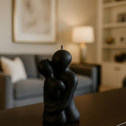 Aşkın Siyah Dokunuşu: Kucaklaşan Figür Dekoratif Mum