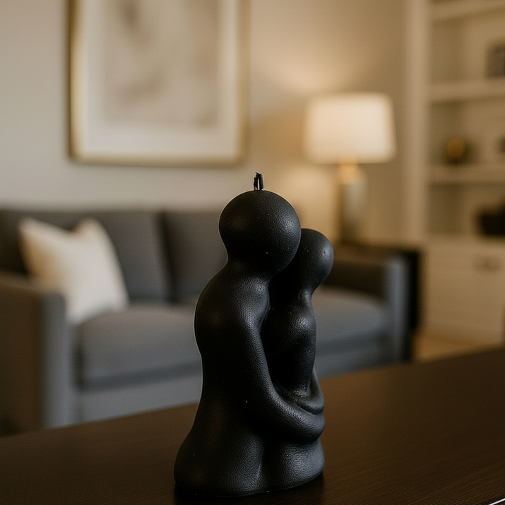 Aşkın Siyah Dokunuşu: Kucaklaşan Figür Dekoratif Mum