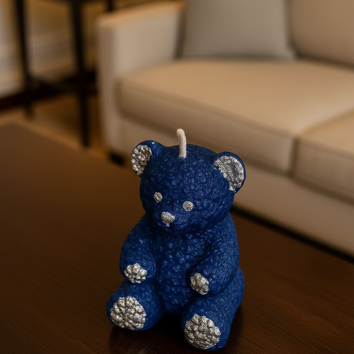 Parıltılı Mavi Ayıcık Dekoratif Mum